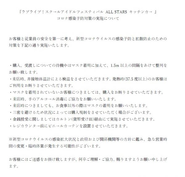 ラブライブ!スクールアイドルフェスティバル ALL STARS キッチンカー