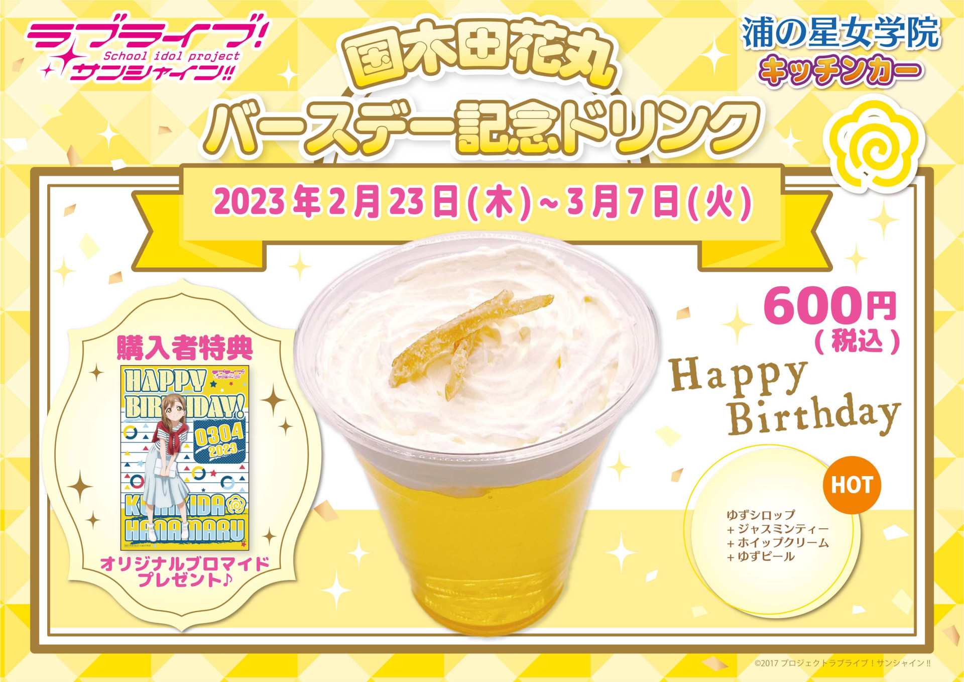 沼津エリアを中心に営業中の「浦の星女学院キッチンカー」よりバースデー記念メニュー発売のお知らせです