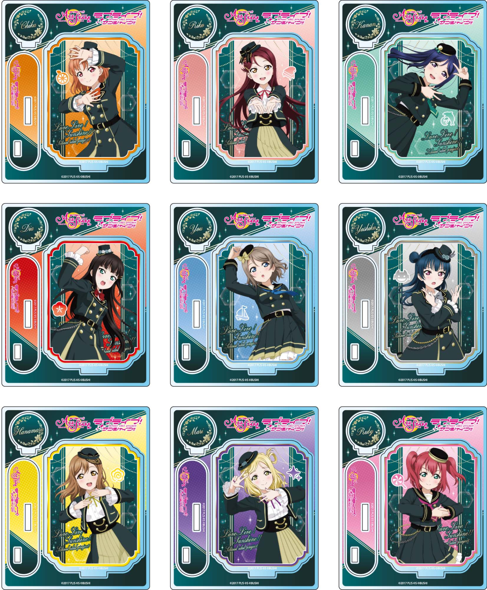 ODAIBAゲーマーズ(ラブライブ!虹ヶ咲学園スクールアイドル同好会オフィシャルタイアップショップ)、ゲーマーズ沼津店にてAqoursの「君の瞳を巡る冒険」のイラストを使用した、スクエアカンバッジ、ワイヤーキーホルダー、アクリルスタンドが先行発売されます