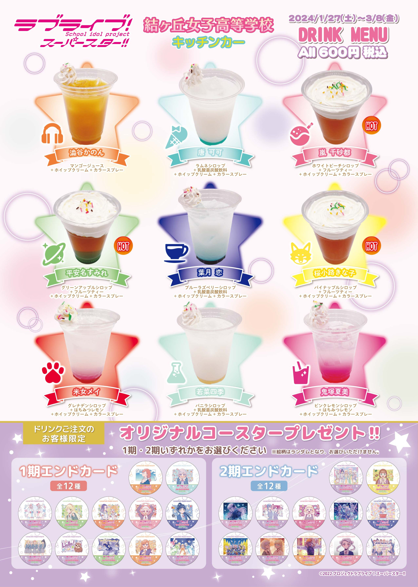 『THEキャラCAFÉ STAND×ラブライブ!スーパースター!!』にて、2024年2月・2024年3月のスタンプカード特典をご紹介★