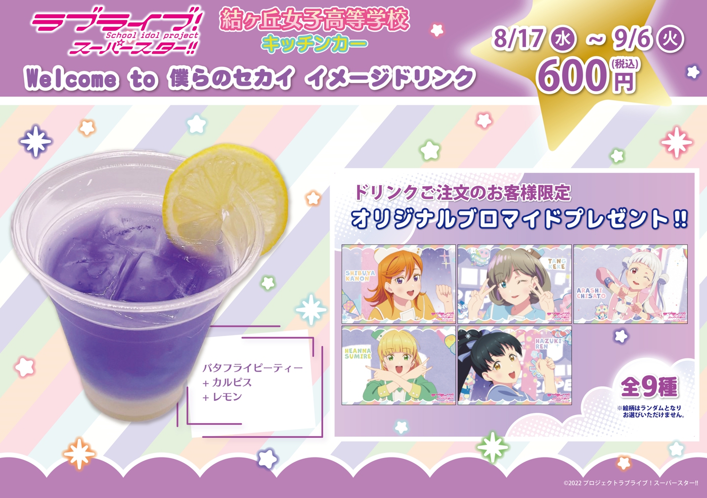 8月17日(水)~9月6日(火)の期間でTVアニメ「ラブライブ!スーパースター!!」 2期第1話挿入歌『Welcome to 僕らのセカイ』をイメージしたドリンクが新登場します!